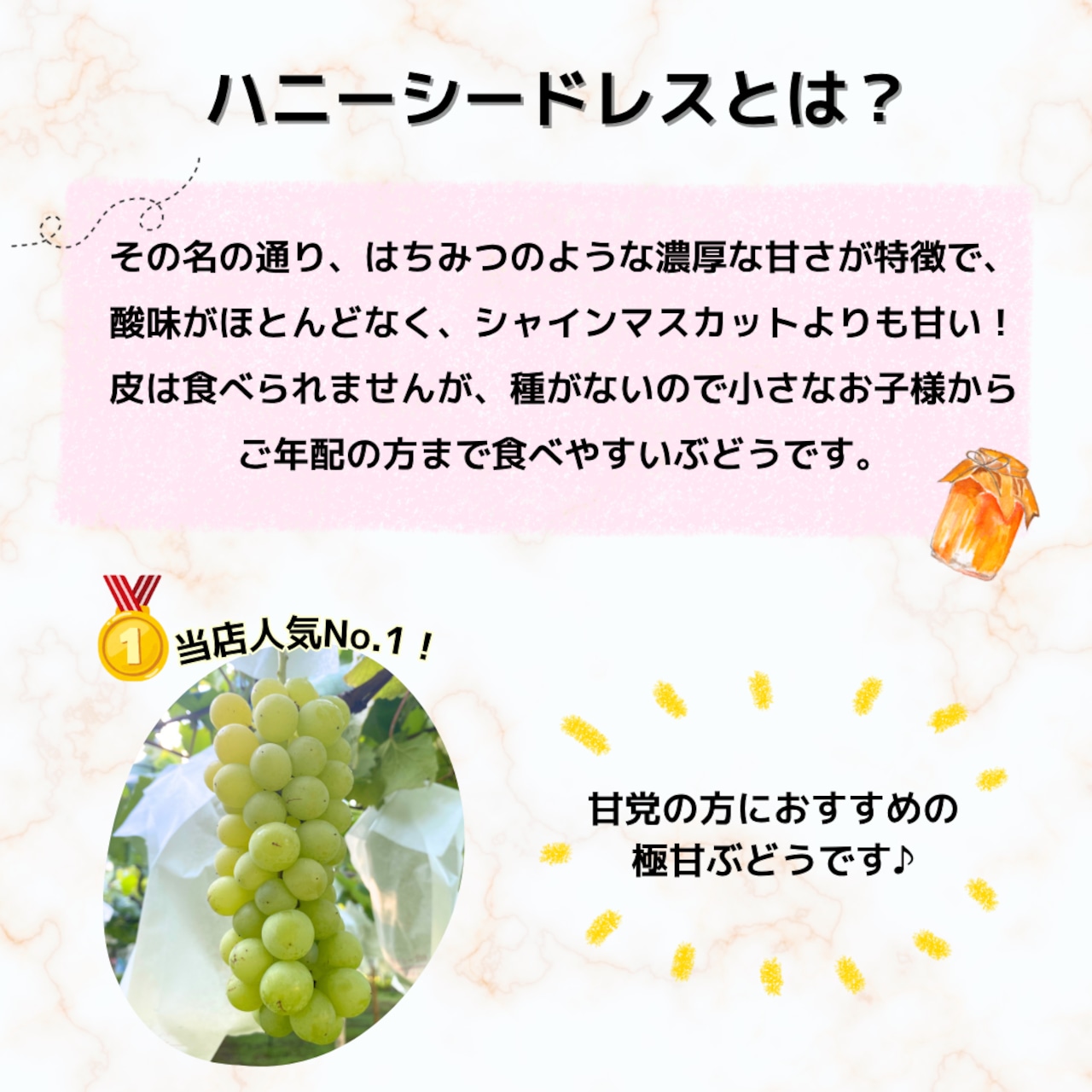 はちみつのような甘さ! 希少ぶどう「ハニーシードレス」詰め合わせセット